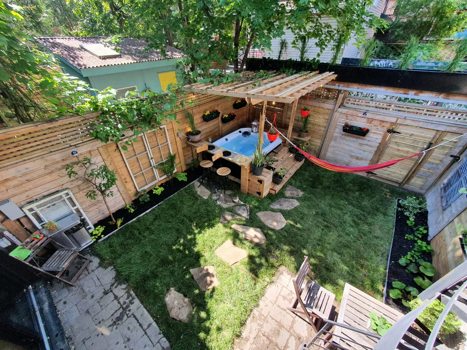 Pergola et encastrement d'un jacuzzi sur mesure en cèdre.